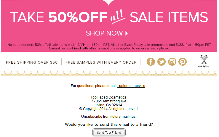 Are you interested in seeing some of Too Faced’ older Black Friday ads? Then follow the links below to view the last few years of ad history.