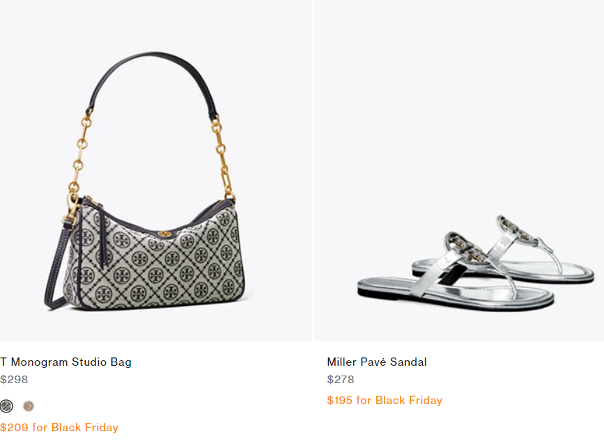 - Tory Burch offers up to 60% off Black Friday Sale.